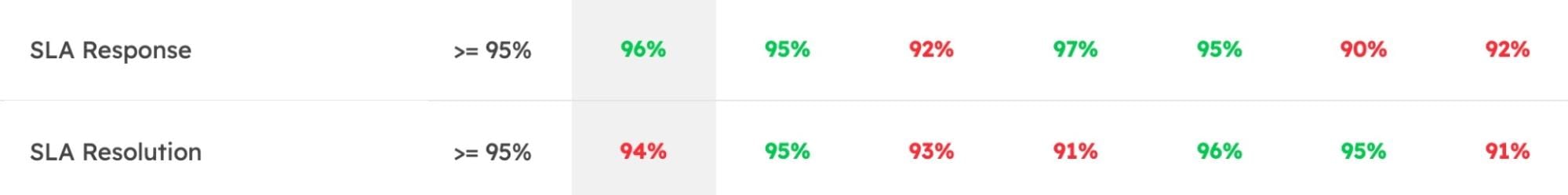 The first issue with the SLA scorecard: we weren’t quite sure why it was there. 95% was used for so long each leadership team member would likely have a unique perspective on why. One person might say, “it tells us if we provided good service last week.” Another might say, “we can tell whether or not our team is managing tickets well.” Or a third may assume, “we use that number to know if our clients are happy with us.” No one is wrong. No one is right. We’re measuring everything and nothing all at once — and that’s not good enough.